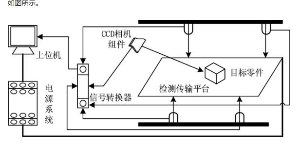 機(jī)器視覺是一種利用計(jì)算機(jī)來分析圖像的一種方法,采用的是將CCD相機(jī)拍攝到的目標(biāo)圖像實(shí)時轉(zhuǎn)換成圖像信號,然后將圖像信號輸入進(jìn)嵌入式視覺圖像處理系統(tǒng)。根據(jù)圖像飽和度、像素分布、目標(biāo)圖像邊沿、亮度等信息轉(zhuǎn)換成計(jì)算機(jī)識別的數(shù)字信號,利用先進(jìn)的算法對圖像進(jìn)行特征識別,將特征識別出來的結(jié)果進(jìn)行評價,輸出最終的缺陷結(jié)果,包括尺寸、角度、個數(shù)、合格與不合格、有無等,實(shí)現(xiàn)自動識別功能。機(jī)器視覺檢測系統(tǒng)包括CCD 相機(jī)組件、傳輸帶、視覺光源、工業(yè)采集卡、工業(yè)計(jì)算機(jī)等,如圖所示。