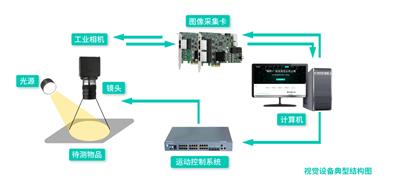 一個典型的機器視覺檢測系統(tǒng)主要硬件組成為:光源、鏡頭、相機、 圖像處理單元、 監(jiān)視器、 通訊、輸入輸出單元等?;谝陨闲枨蠓治?,結(jié)合機器視覺檢測系統(tǒng)的具體特點,設(shè)計金屬罐蓋缺陷檢測系統(tǒng)的硬件結(jié)構(gòu)如圖所示: