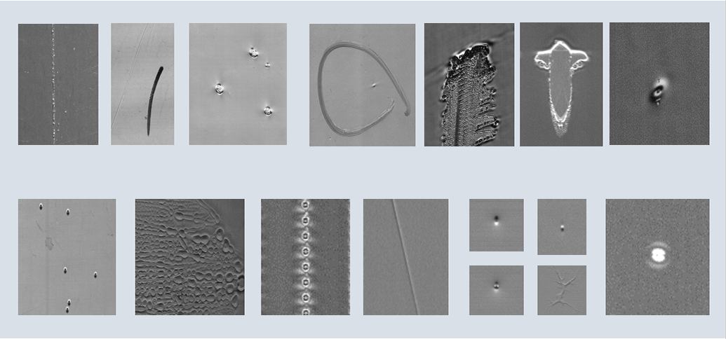 缺陷類型 晶點(diǎn)、線條、黑點(diǎn)、蚊蟲、孔洞、劃傷等常見缺陷