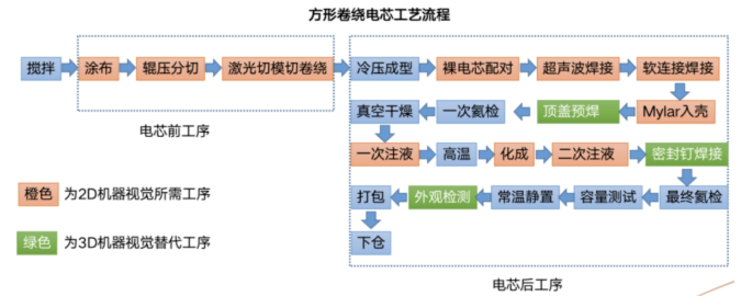 同時,在模組和PACK段,以視覺檢測裝備為主,主要應用于底部藍膠檢測、BUSBAR焊縫檢測、側焊縫檢測、模組全尺寸檢測、PACK檢測等。