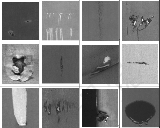 將工業(yè)線陣CCD 相機架設在鋁箔上下表面,采用高亮 LED 線性聚光冷光源將材料表面照亮,通過編碼器觸發(fā)相機進行在線掃描式拍攝。高速圖像處理系統(tǒng)實時獲取表面圖像,智能圖像算法識別表面硌痕、油斑、污漬、擦傷、條紋、氣泡、夾雜等瑕疵。并利用信號控制系統(tǒng)做出相應反饋。缺陷記錄存儲于數(shù)據(jù)庫中以供回查。